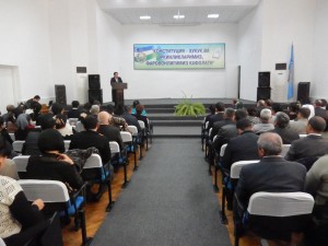 Мазкур тадбирга таклиф этилган меҳмонлар- маънавият ишлари бўйича вилоят ҳокимининг ёрдамчиси Т.Дедахонов, Наманган юридик коллежи катта ўқитувчиси М.Умрзоқовалар Конституциянинг мазмун моҳияти, аҳамияти ҳақида батафсил сўз юритдилар.