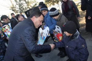 Туман ҳокимлиги, касаба уюшмалари тармоқ кенгашлари, туман ички ишлар бўлими, “Камолот” ЁИҲ туман Кенгаши ҳамкорлигида ташкил этилган бу байрамда 10 нафар ота-онасиз қолган болалар, 450 нафар ижтимоий ҳимояга мухтож оилалар фарзандларига янги йил совғалари тарқатилди.